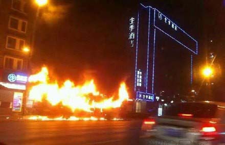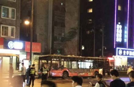 公交車(chē)只燒剩個(gè)車(chē)架,事故造成6名乘客受傷。